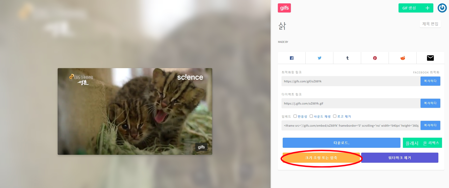 8. 완료된 움짤을 다운로드해서 이용하면 된다.