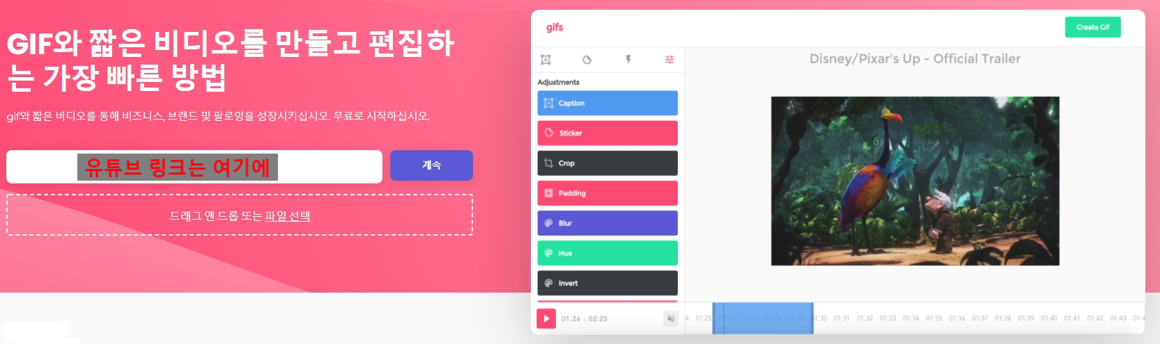 유튜브 공유 링크를 통해 바로 움짤을 만들 수 있는 사이트가 있습니다.
