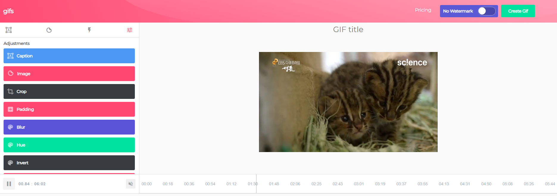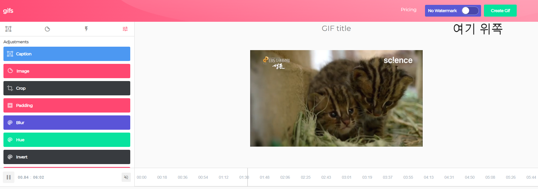 6. 편집을 완료하고 gif를 만들고 싶다면 오른쪽 상단에 "Create Gif"를 클릭하면된다.