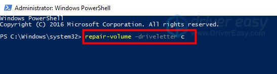 이 방법은 PowerShell을 사용하여 Repair -Volume -DriveLetter 명령을 실행하여 하드 디스크 오류를 검색하고 수정하는 것입니다.