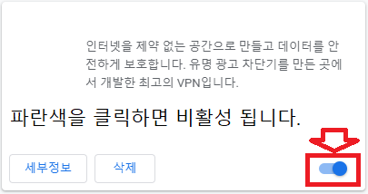 2. 광고 차단 "에드 블럭"을 쓰고 있다면 파랑색 막대를 클릭하여 "비활성" 상태로 만들어 줍니다.