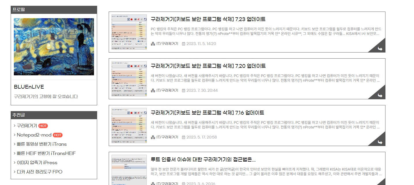 2. 추천글 > 구라제거기를 눌러 최신버전을 다운로드하여 줍니다.