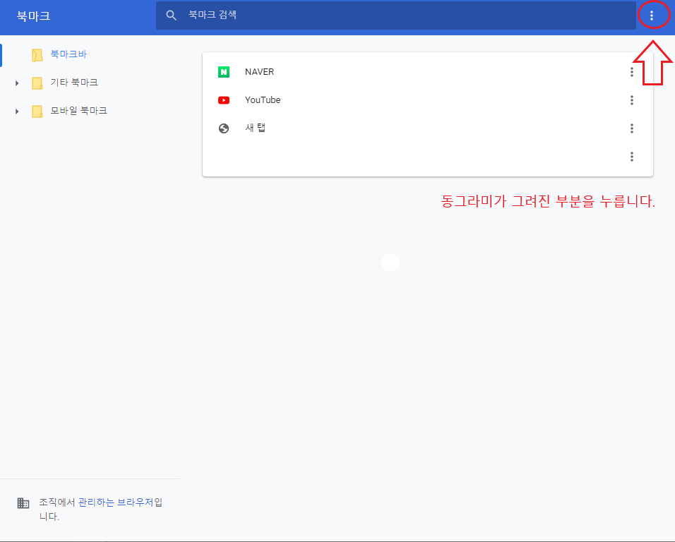 3) 사진에 보이는 동그라미가 쳐진 부분을 클릭해 북마크를 가져오기를 클릭한다.