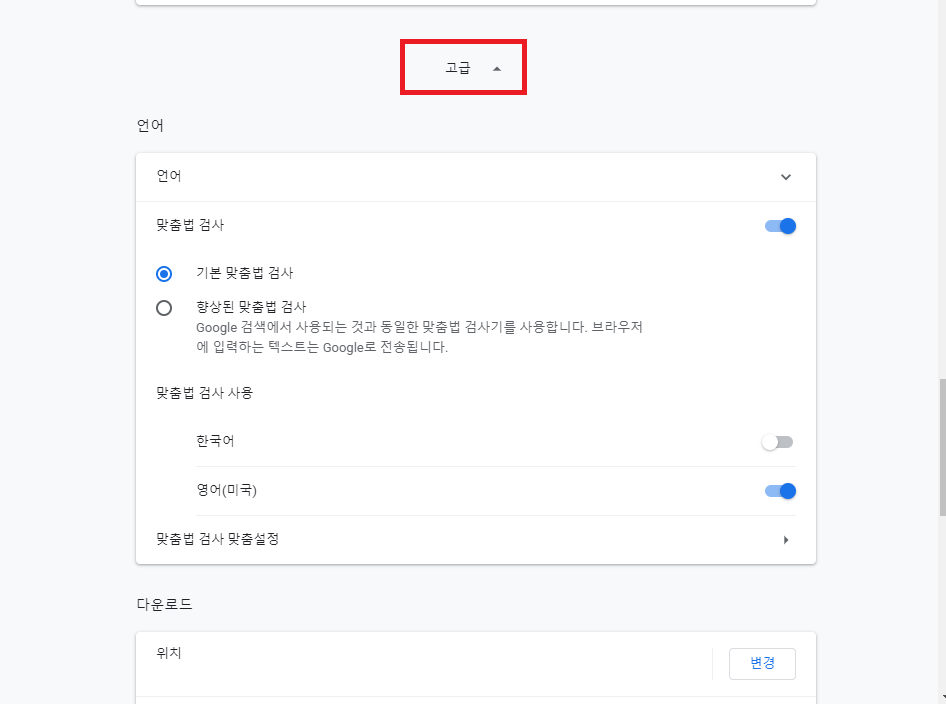 3) 아래로 쭉 내려서 "고급"을 열어준다.