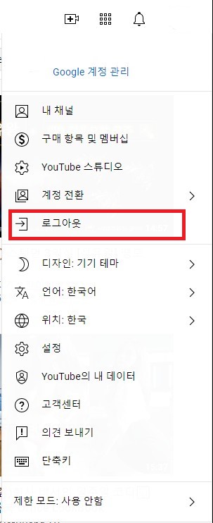 로그아웃하려면 YouTube 페이지의 오른쪽 상단 모서리에 있는 계정 아이콘을 클릭한 다음 로그아웃을 클릭하십시오.