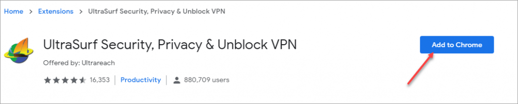 Ultrusurf를 사용하려면 Chrome 브라우저에 추가하기만 하면 된다.
